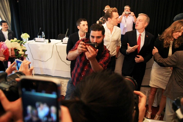 Vừa xuất hiện Tom Hiddleston đã nở nụ cười thân thiện và vẫy tay chào những người có mặt trong khán phòng, trong khi đó đạo diễn Jordan Vogt Robert tỏ ra bận bịu với việc chụp ảnh “tự sướng”.