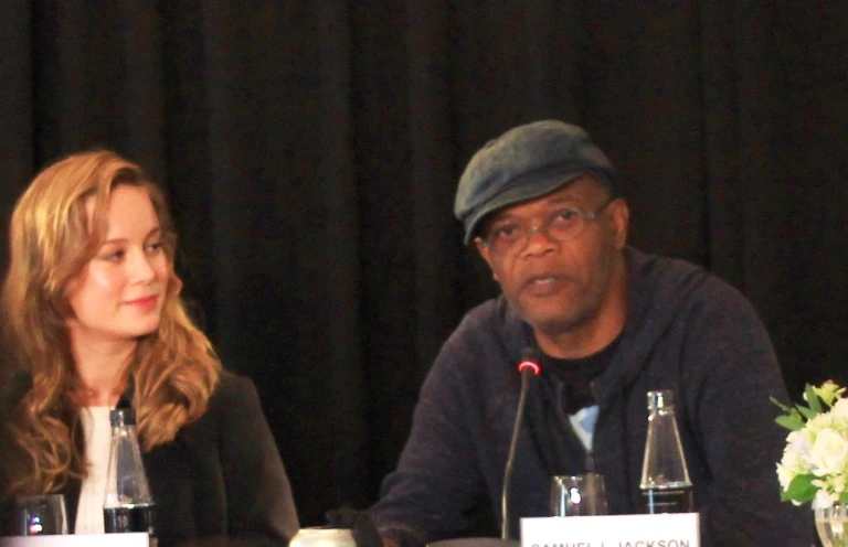 Tài tử Samuel L. Jackson (phải) trả lời câu hỏi của báo chí.