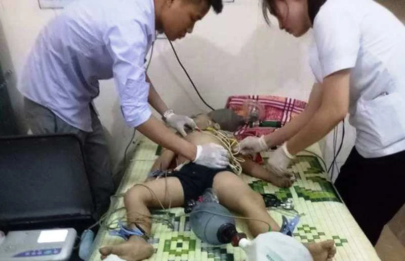 Các y, BS đã nỗ lực cấp cứu, nhưng hai cháu Đ. và Th. đã tử vong do đuối nước hố công trình móng trụ cột điện