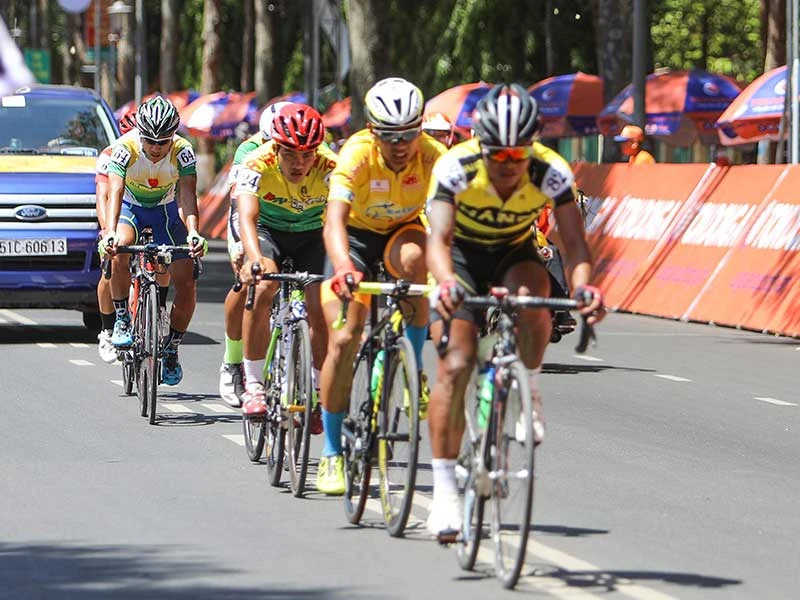 Cả áo vàng lẫn Nguyễn Thành Tâm (64) buồn bã cùng tốp cuối về đích chặng 6 sau sự cố bể vỏ vì đường đua xấu. Ảnh: PHẠM HUY