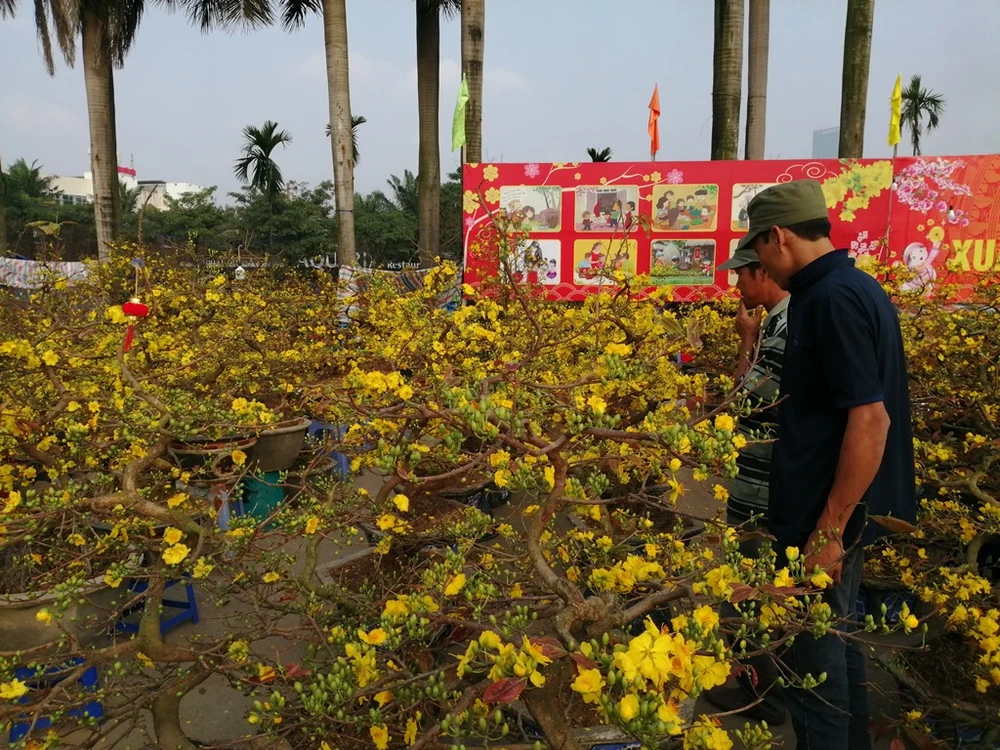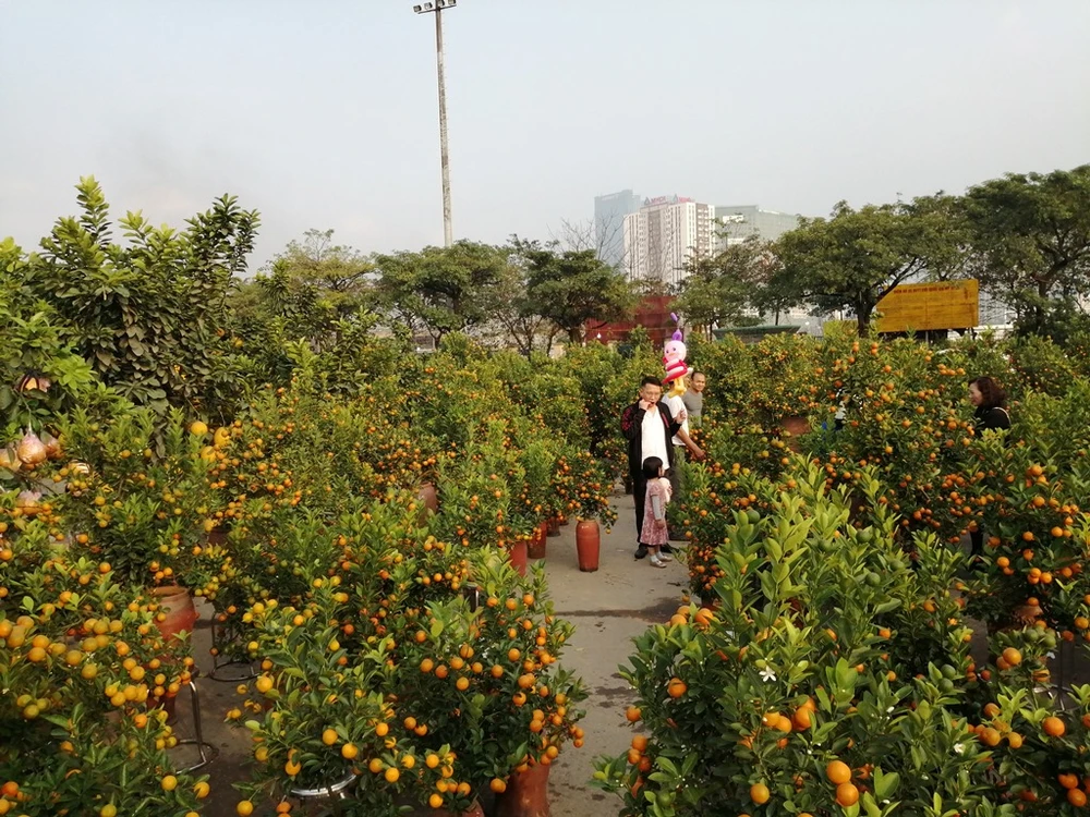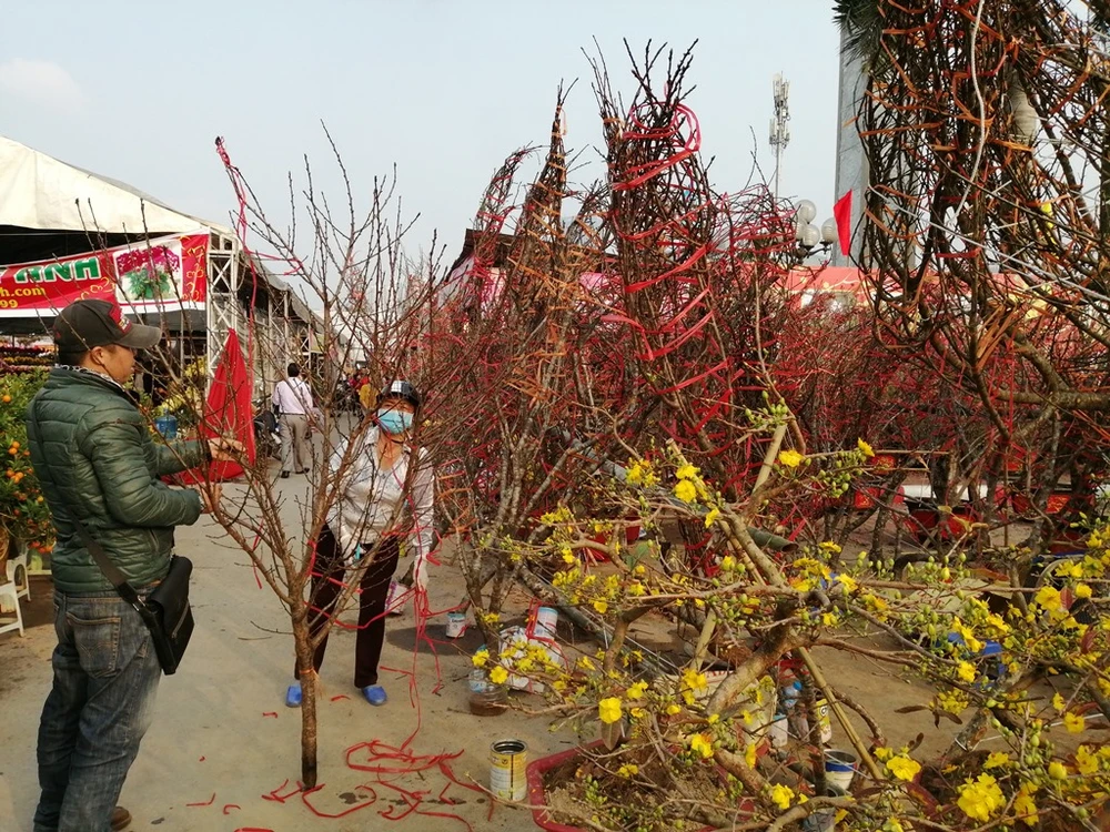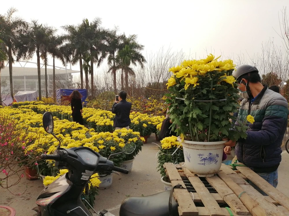 Bắt đầu mở cửa từ giữa tháng 1-2019, chợ hoa xuân tại khu vực SVĐ quốc gia Mỹ Đình là một trong những điểm "tập kết" hoa lớn nhất tại Hà Nội. Ảnh: PHÚC BÌNH