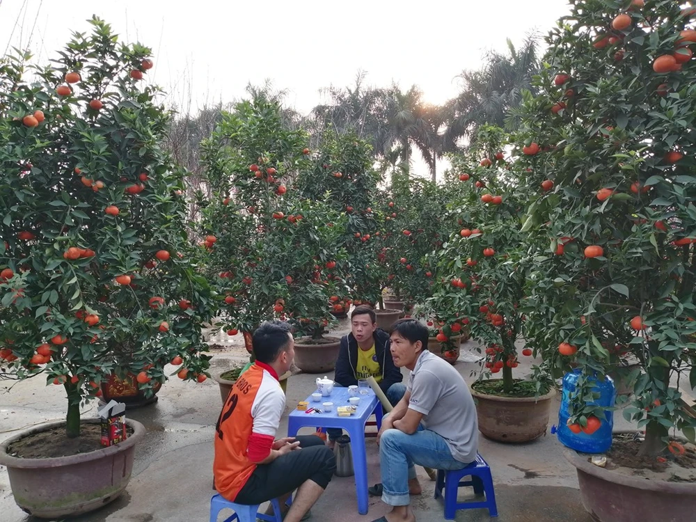 Ngoài quất lùm như bình thường, những năm gần đây, quất thế được trồng sẵn trong bình đang trở thành "mốt" mới. Ảnh: PHÚC BÌNH.