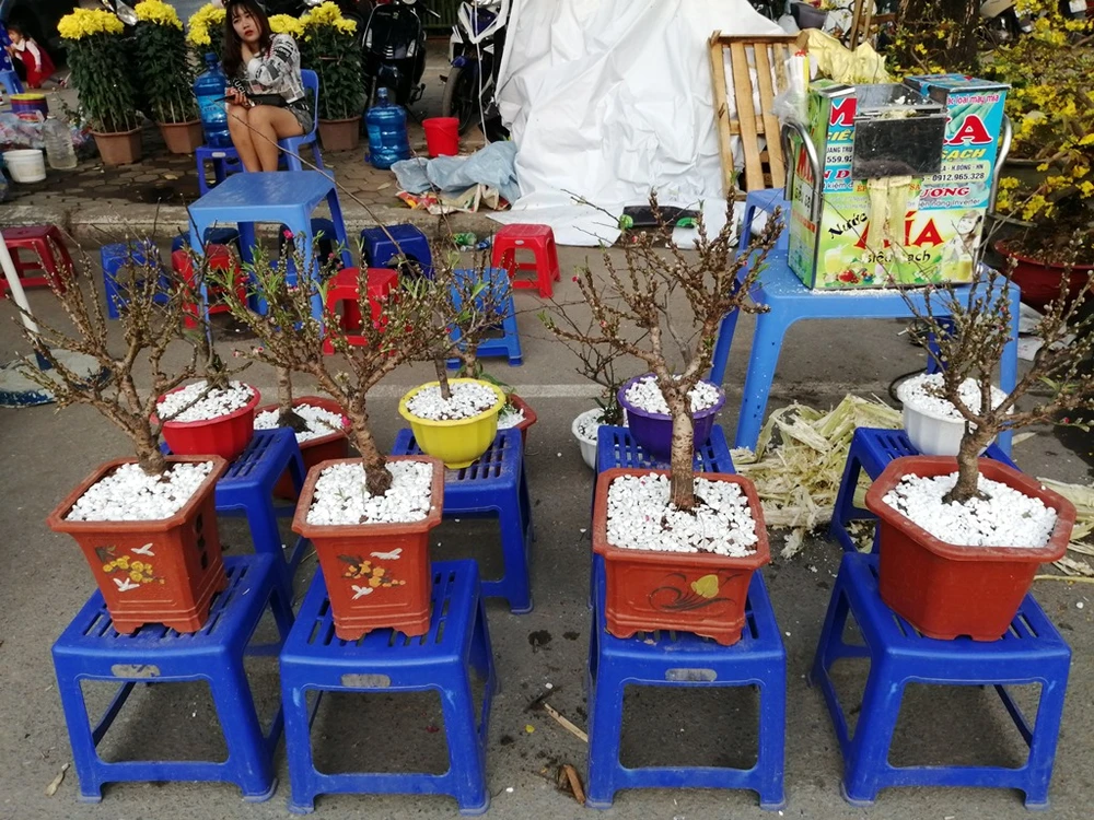 Phổ biến hơn là cả đào bích đến từ các nhà vườn tại Nhật Tân, Hà Nội. Ảnh: PHÚC BÌNH.