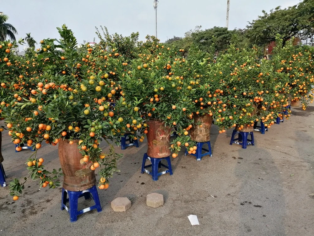 Quất cảnh cũng là mặt hàng chiếm số đông tại chợ hoa năm nay. Ảnh: PHÚC BÌNH.