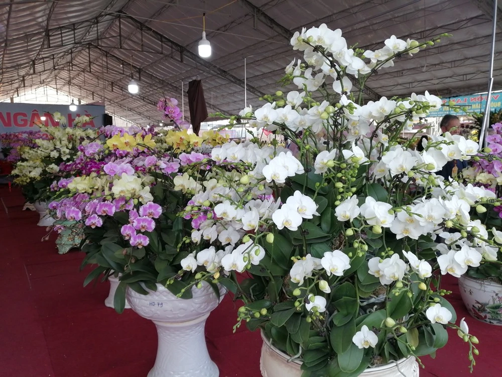 Những chậu hoa lan "khủng" cũng là điểm đến chú ý tại chợ hoa xuân. Ảnh: PHÚC BÌNH.