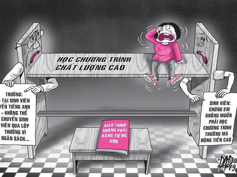 Tương tự, em MH, là SV khóa 13 đang theo học CTCLC ngành kỹ thuật, chia sẻ: Ban đầu khi quyết định theo học CTCLC em cũng đã được tư vấn về chương trình. Theo đó, nếu em theo học CTCLC sẽ được nâng cao trình độ ngoại ngữ, được học giáo trình bằng tiếng Anh, được trường tạo điều kiện tối đa về việc làm khi ra trường. Em nghe rất thích nên đã thuyết phục gia đình đầu tư cho mình để theo học chương trình này. Tuy nhiên, trên thực tế các em không được đào tạo bằng tiếng Anh mà chương trình cũng đào tạo như các lớp đại trà. Trong khi đó, các SV lớp CTCLC phải đóng học phí một học kỳ hơn 16 triệu đồng, còn lớp đại trà chỉ có khoảng 8 triệu đồng.