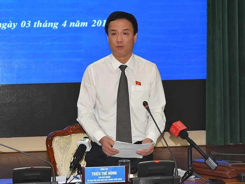 Phó Chủ nhiệm Ủy ban Văn hóa, Giáo dục, Thanh niên, Thiếu niên và Nhi đồng của Quốc hội Triệu Thế Hùng phát biểu. Ảnh: PHƯƠNG THÙY
