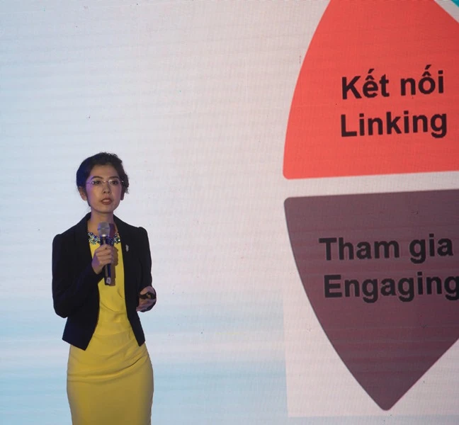 TS Phan Thị Ngọc Thanh, Giám đốc Trung tâm Đào tạo trực tuyến - ĐH Mở TP.HCM, giới thiệu quá trình đào tạo trực tuyến. Ảnh: AN NHIÊN
