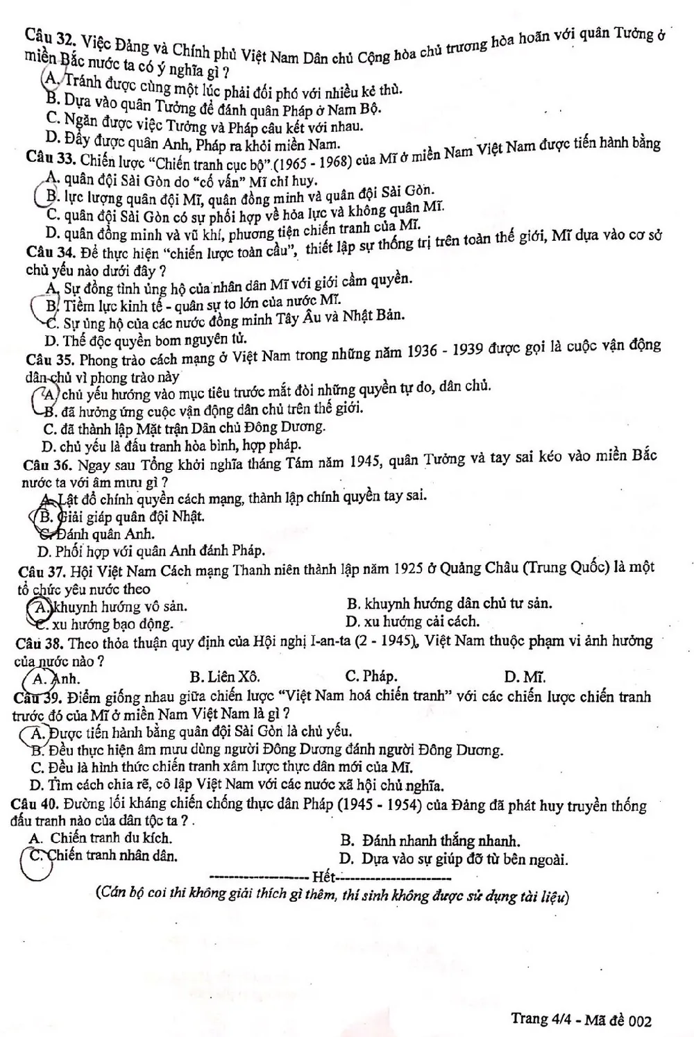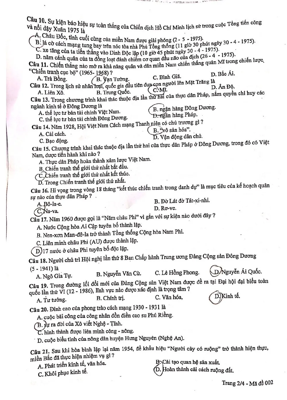 Đáp án đề thi vào lớp 10 Hà Nội môn Lịch sử