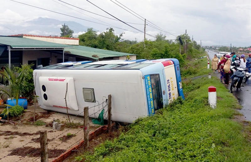 Chiều 19-9, xe buýt của Công ty TNHH Quyết Thắng Nha Trang chở 20 hành khách từ TP Nha Trang (Khánh Hòa) đi TP Tuy Hòa (Phú Yên) trên quốc lộ 1. Khi đến đoạn qua xã Ninh Thọ, thị xã Ninh Hòa (Khánh Hòa), xe buýt bất ngờ lao xuống sân ngôi nhà ven đường, rồi lật nghiêng.