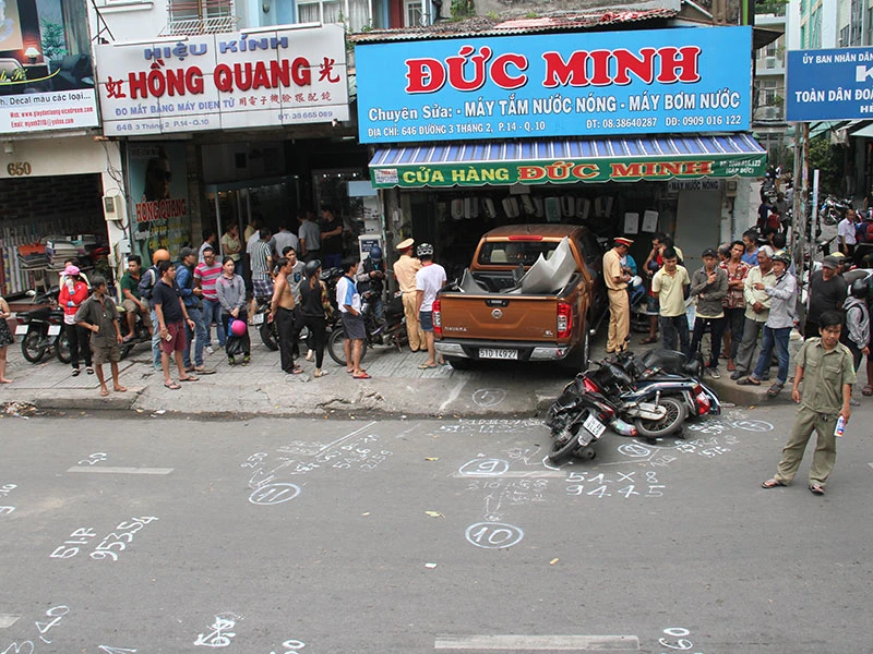 Theo thông tin ban đầu, 11 giờ trưa 15-7, ô tô bán tải do tài xế Lâm Văn Giang (41 tuổi, ngụ quận 10, TP.HCM) chạy trên đường Ba Tháng Hai theo hướng từ cầu vượt Nguyễn Tri Phương về vòng xoay Cây Gõ. Khi đến giao lộ với đường Nguyễn Kim (phường 14, quận 10) tài xế ôm cua để quay ngược lại thì xe mất lái, tông thẳng vào dải phân cách.