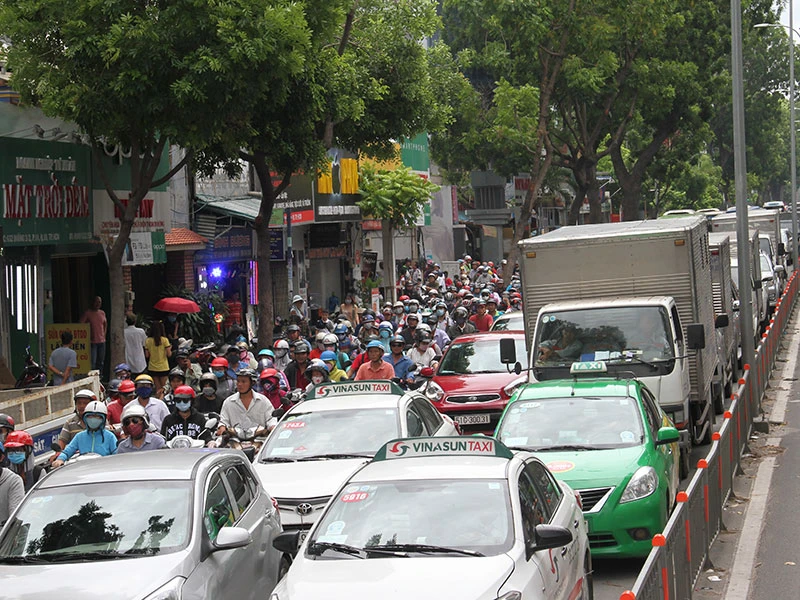 Vụ việc khiến giao thông qua khu vực bị ùn ứ nghiêm trọng. Ảnh: NGUYỄN TÂN