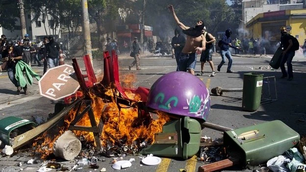 Corinthians tại Sao Paulo trong khi một số người khác bị thương khi đụng độ cảnh sát tại Rio. Những người biểu tình đã hô vang khẩu hiệu “Ở đây không có Cup” và cố gắng chặn các lối vào sân vận động Arena Corinthians.