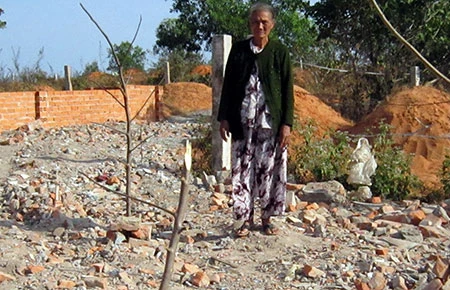 | Bà Trần Thị Lùn (phường Đức Long, TP Phan Thiết) cho biết bốn ngôi mộ gồm mộ ông nội, cha mẹ và chú của bà đã bị ai đó dùng cuốc vạt đi một góc để đánh dấu. Theo bà Lùn, nếu không bị phát hiện thì chắc mồ mả cha ông mình cũng đã bị xóa sổ. |