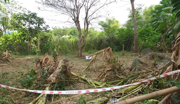 Khi đến hiện trường, hàng xóm thấy ông Minh nằm bất động, trên người nhiều vết thương. Nhiều gốc cây trong vườn bị ngã đổ do sức công phá của vụ nổ.