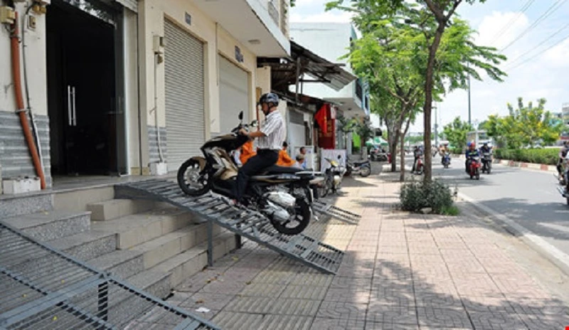 Một số nhà dân trên đường Phạm Văn Đồng (Gò Vấp), Nguyễn Sỹ Sách, Bạch Đằng (Tân Bình), Vạn Kiếp (quận Bình Thạnh) TP.HCM… phải bị đập bỏ bậc tam cấp vào nhà để giải tỏa phần lấn chiếm vỉa hè. Đáng nói là các căn nhà này đang trong tình cảnh nền nhà cao hơn mặt đường từ vài tấc đến hơn cả mét.