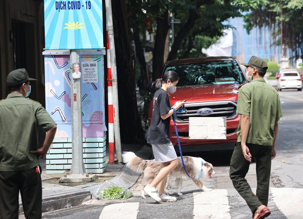 Dắt chó đi dạo giữa lúc thực hiện Chỉ thị 16, cô gái bị phạt 2 triệu đồng. Ảnh: TP