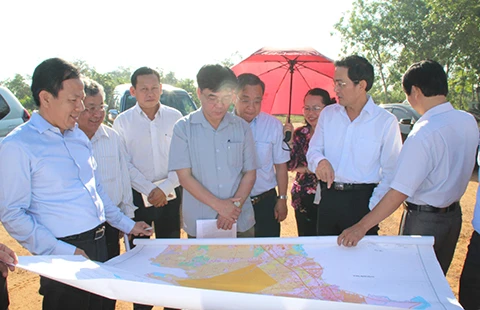 Đoàn công tác khảo sát thực địa khu vực dự án Cảng hàng không quốc tế Long Thành ngày 29-12. Ảnh: TD