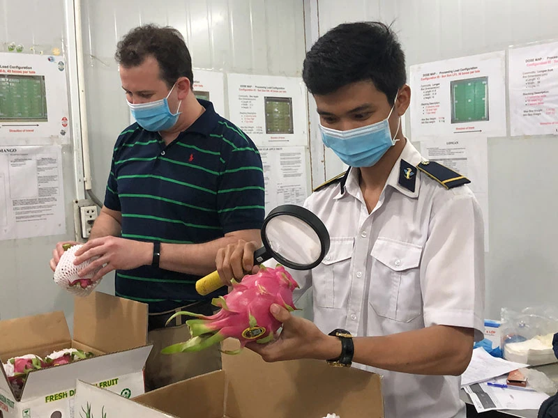 Cuối năm là thời điểm đẩy mạnh xuất khẩu hàng hóa nhưng các doanh nghiệp đang gặp khó. Trong ảnh: Hàng trái cây xuất khẩu sang Mỹ được kiểm tra, chiếu xạ tại Trung tâm chiếu xạ Sơn Sơn ở TP.HCM. Ảnh: QUANG HUY