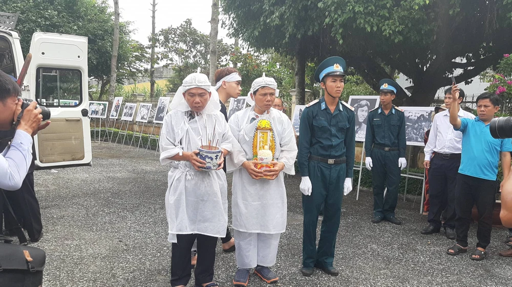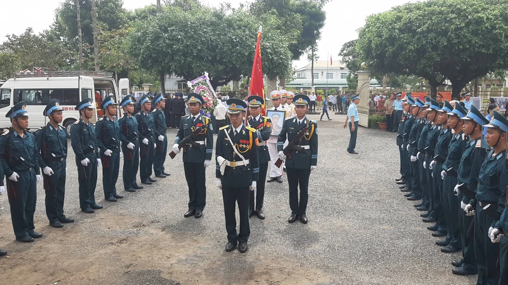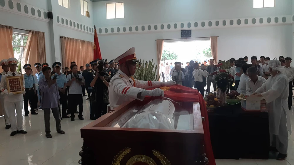 Chuẩn bị đưa Đại tá, anh hùng phi công Nguyễn Văn Bảy vào khu vực tổ chức lễ tang.