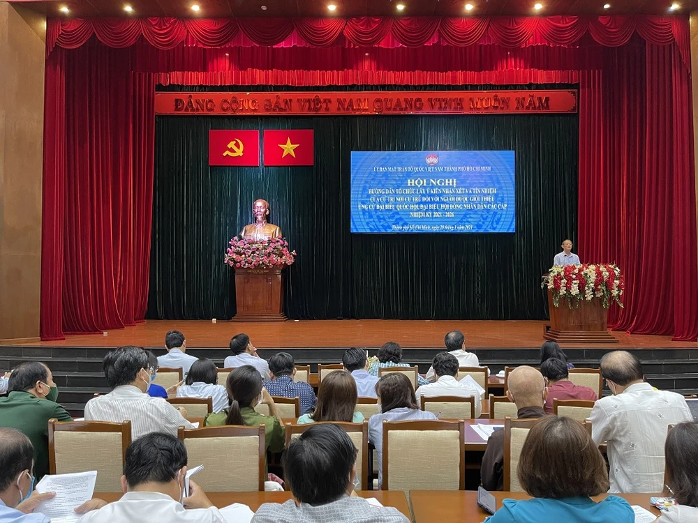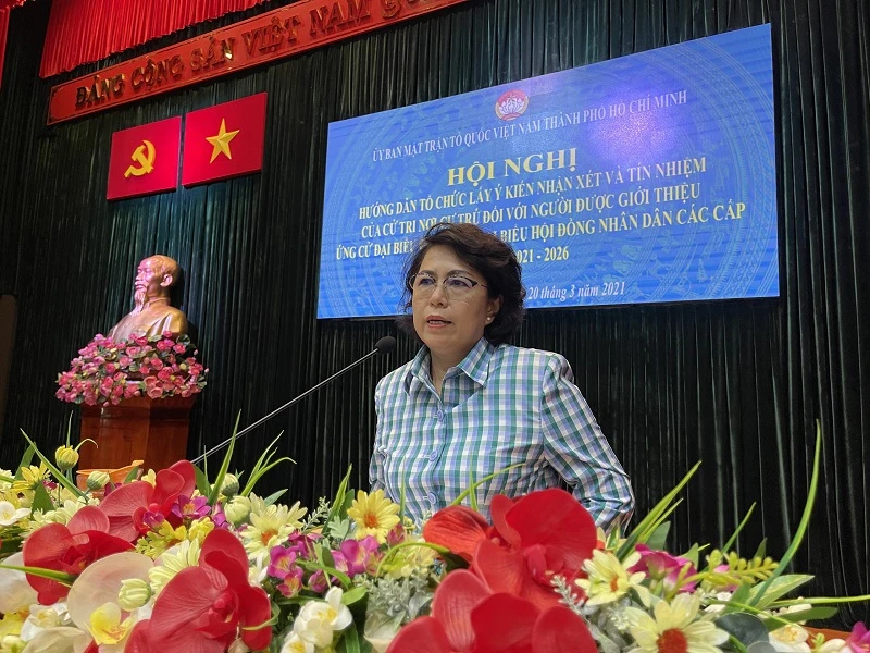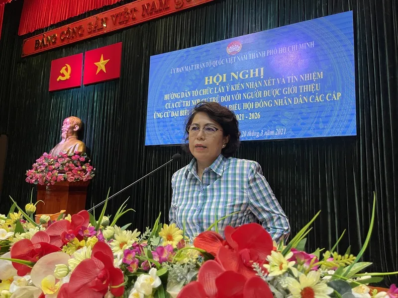 Bà Tô Thị Bích Châu, Chủ tịch Ủy ban MTTQ Việt Nam TP.HCM, nhấn mạnh việc tổ chức lấy ý kiến cử tri rất quan trọng để lựa chọn người đủ tiêu chuẩn và thực sự tiêu biểu. Người tự ứng cử có quyền bình đẳng như nhau khi lấy ý kiến tại nơi cư trú.