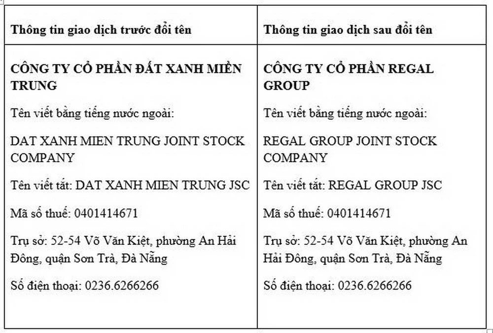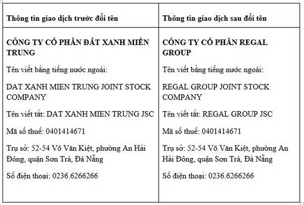 Việc đổi tên và thay đổi bộ nhận diện thương hiệu nằm trong mục tiêu thay đổi cơ cấu và kiện toàn chiến lược phát triển lâu dài mà Regal Group đã chuẩn bị trong suốt thời gian qua. Sự thay đổi này không làm ảnh hưởng đến các quyền, nghĩa vụ liên quan giữa Regal Group với quý doanh nghiệp, quý đối tác và quý khách hàng trong các giao dịch, hợp tác trước đây.