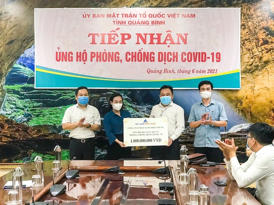 Đất Xanh Miền Trung trực tiếp ủng hộ tỉnh Quảng Bình 1 tỉ đồng trong đợt phát động đóng góp quỹ vaccine hồi tháng 6-2021. Ảnh: K.T.