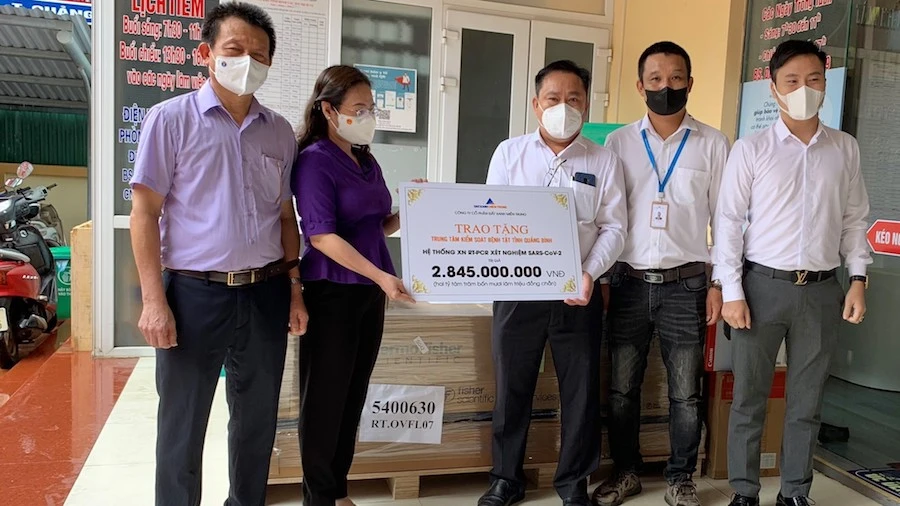Trước khi trao tặng hệ thống xét nghiệm tự động RT-PCR trị giá 2,8 tỉ đồng cho CDC Quảng Bình, Đất Xanh Miền Trung cũng đã ủng hộ 1 tỉ đồng ủng hộ quỹ vaccine cho UBMTTQ Việt Nam tỉnh và 50 triệu đồng tiền mặt gửi đến CDC Quảng Bình.