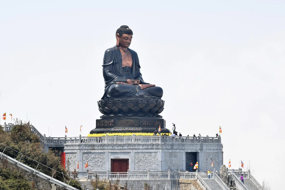 Đại tượng Phật A Di Đà cao nhất Việt Nam (21,5 m) sừng sững giữa đất trời Tây Bắc là công trình ấn tượng nhất trong quần thể văn hóa tâm linh Fansipan bởi sự kỳ công của việc ghép từng miếng đồng mỏng 0,5 cm trên thân tượng, bởi những chi tiết trang trí hình rồng, hoa lá, sóng nước... nơi chân tượng, bởi công trình bệ đỡ chân tượng được tạo nên từ đá khối, chạm khắc phù điêu hoa sen thanh khiết.