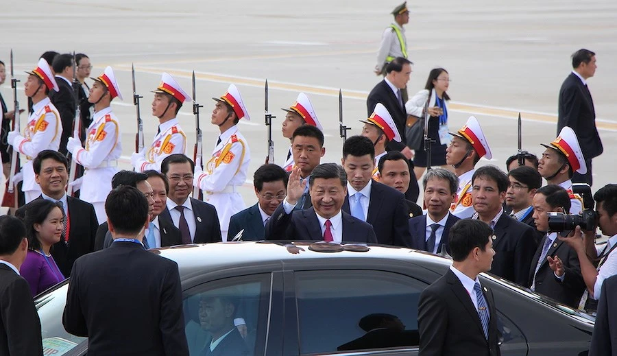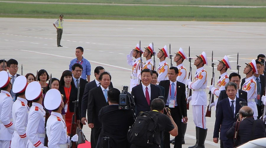 Chủ tịch Trung Quốc Tập Cận Bình tới Đà Nẵng tham dự Tuần lễ cấp cao APEC 2017 và sau đó ông thăm chính thức cấp nhà nước Việt Nam tại Hà Nội. Đây là chuyến công du nước ngoài đầu tiên của Chủ tịch Tập Cận Bình kể từ sau Đại hội Đảng Cộng sản 19 Trung Quốc. Ảnh: LÊ PHI