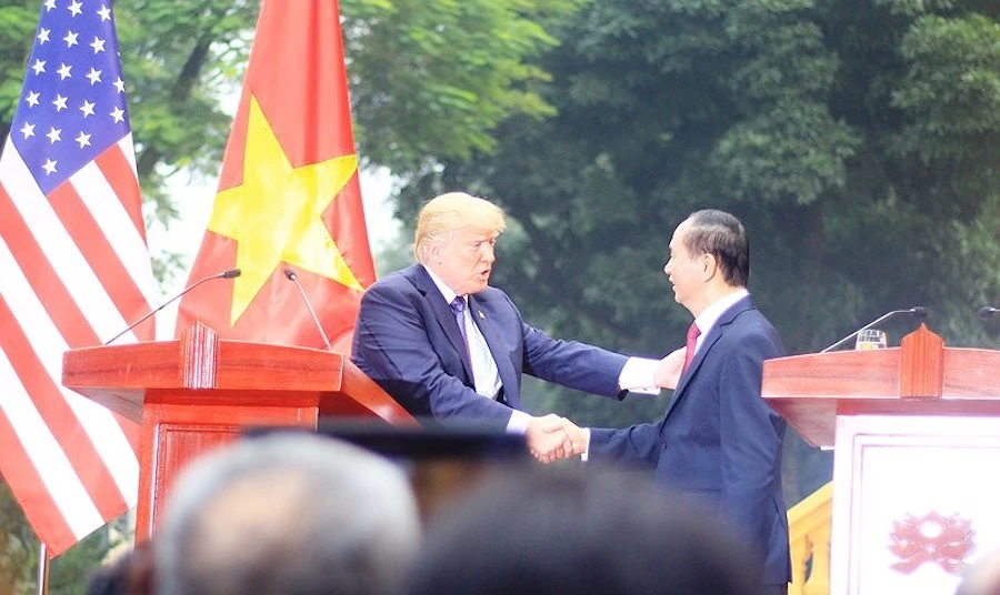 Tổng thống Donald Trump và Chủ tịch nước Trần Đại Quang. Ảnh: VIẾT THỊNH