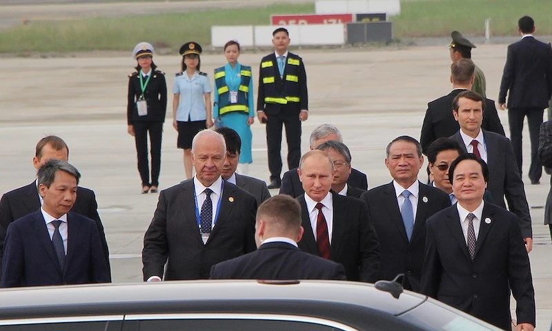 Sáng 10-11, Tổng thống Nga Vladimir Putin đã đáp chuyên cơ xuống sân bay quốc tế Đà Nẵng để dự Tuần lễ cấp cao APEC 2017. Ảnh: LÊ PHI