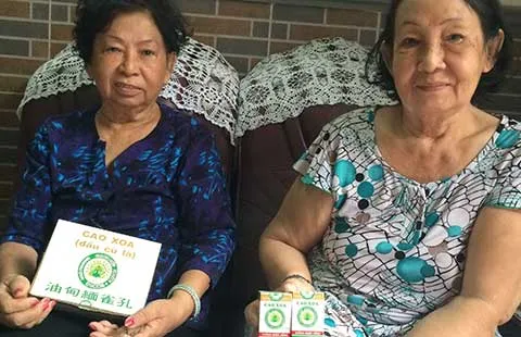 Dầu cù là Mac Phsu “trị tứ thời cảm mạo” từng được quảng cáo khắp nơi, như ở các hiệu buôn hay các chợ như chợ An Đông, chợ Bến Thành… Bà Lê Kim Nga và Lê Kim Phụng ngày nay (ảnh dưới).