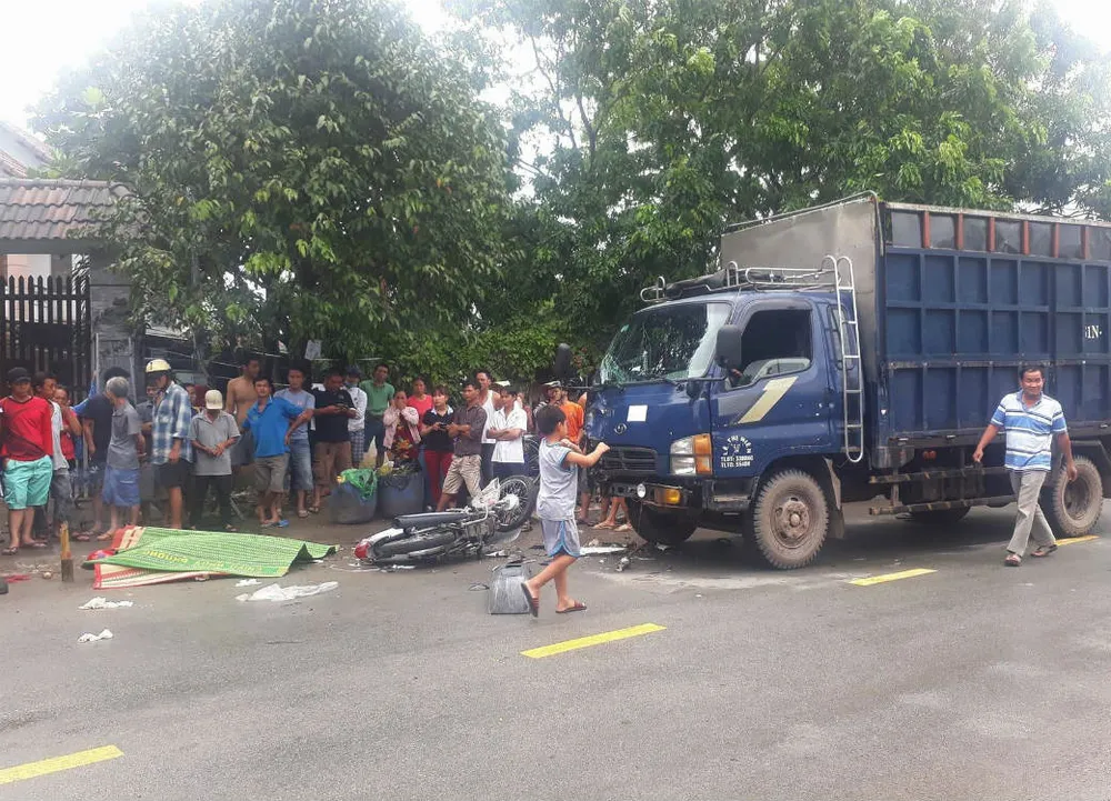 Hiện trường hai thanh niên tử vong vì va chạm với xe tải.