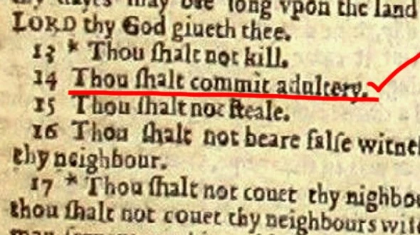 Kinh thánh quy định mọi người phải ngoại tình do lỗi in ấn (dòng chữ gạch đỏ). Nguồn: GEEK