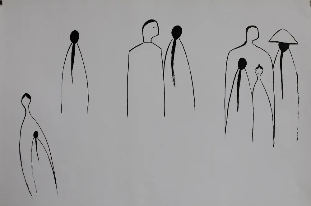 Tác phẩm minh họa bằng mực nho trong "Chuyện nhà Dr Thanh" của họa sĩ Lê Thiết Cương.