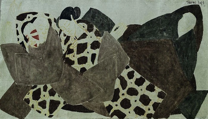 Tác phẩm “Truyện cũ”, màu tự nhiên trên giấy dó, kích thước 60x120 cm của họa sĩ, nhà nghiên cứu Phan Cẩm Thượng.