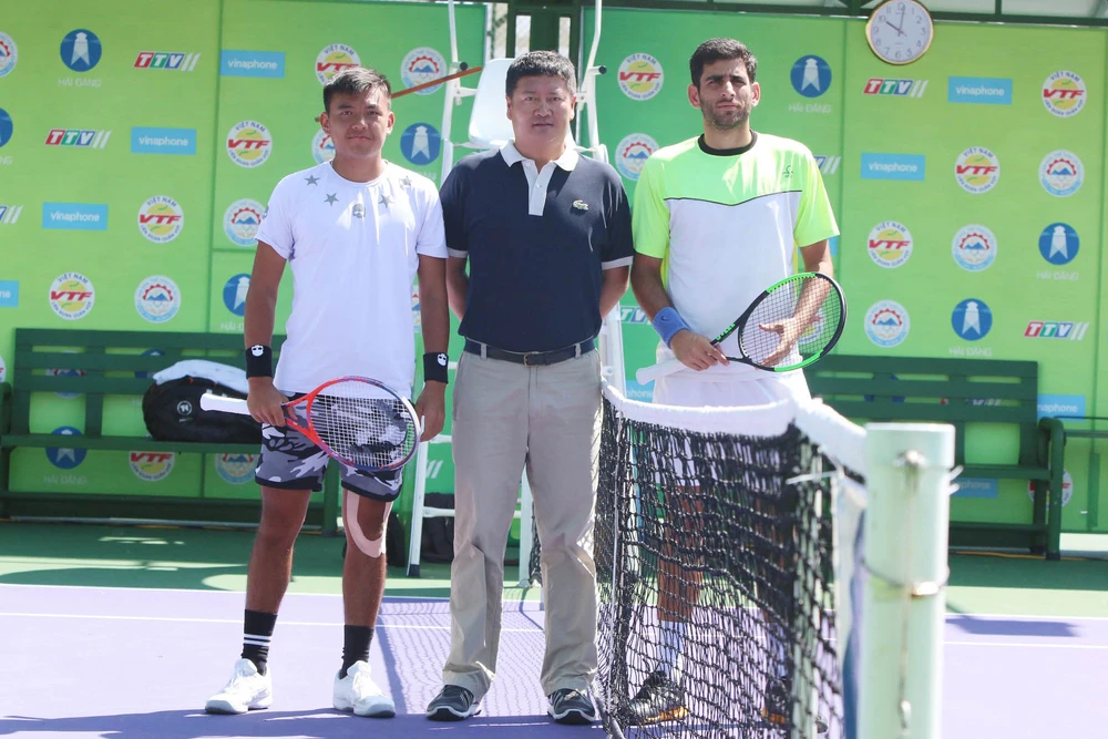 Hai tay vợt làm thủ tục trước trận đấu. Ảnh: CMQ