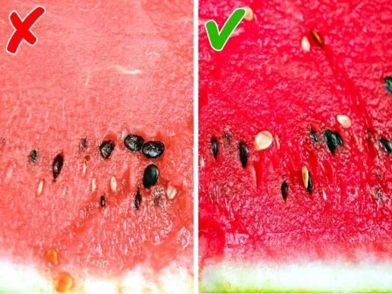 - Khô và cứng- nếu bạn có thể kéo thịt dưa hấu ra khỏi hạt, nó không còn tốt nữa.