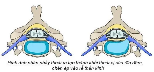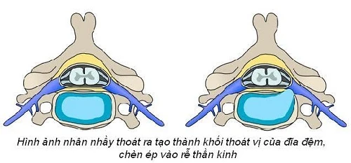 Đĩa đệm là cấu trúc nằm giữa hai đốt sống kế cận. Nó có hình cái đĩa, bên ngoài là một bao xơ dày và chắc, trong ruột là chất nhầy, gần giống như tròng trắng trứng, gọi là nhân nhầy. Khi bao xơ bị rách, nhân nhầy bên trong sẽ thoát ra ngoài, tạo thành một khối gọi là khối thoát vị. Nếu khối thoát vị đè vào rễ thần kinh sẽ gây ra các hiện tượng đau, tê, yếu liệt…
