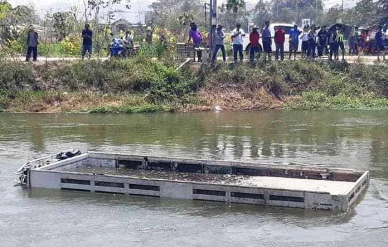 Vụ tai nạn xe chở người lao động rơi xuống nước. Ảnh: FB