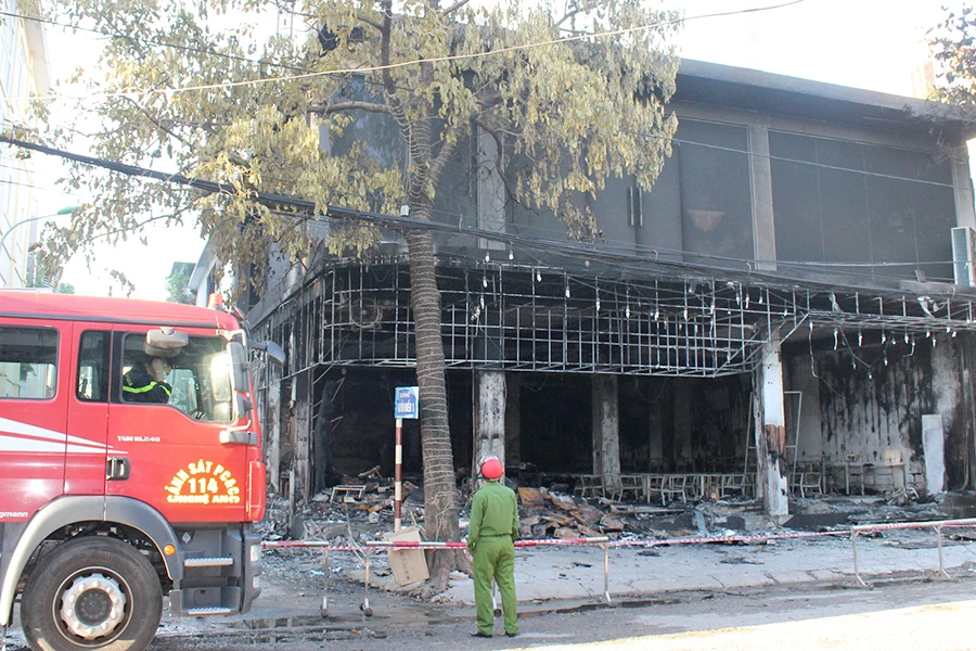 Hiện trường nơi xảy ra vụ cháy làm sáu người tử vong. Ảnh: ĐẮC LAM
