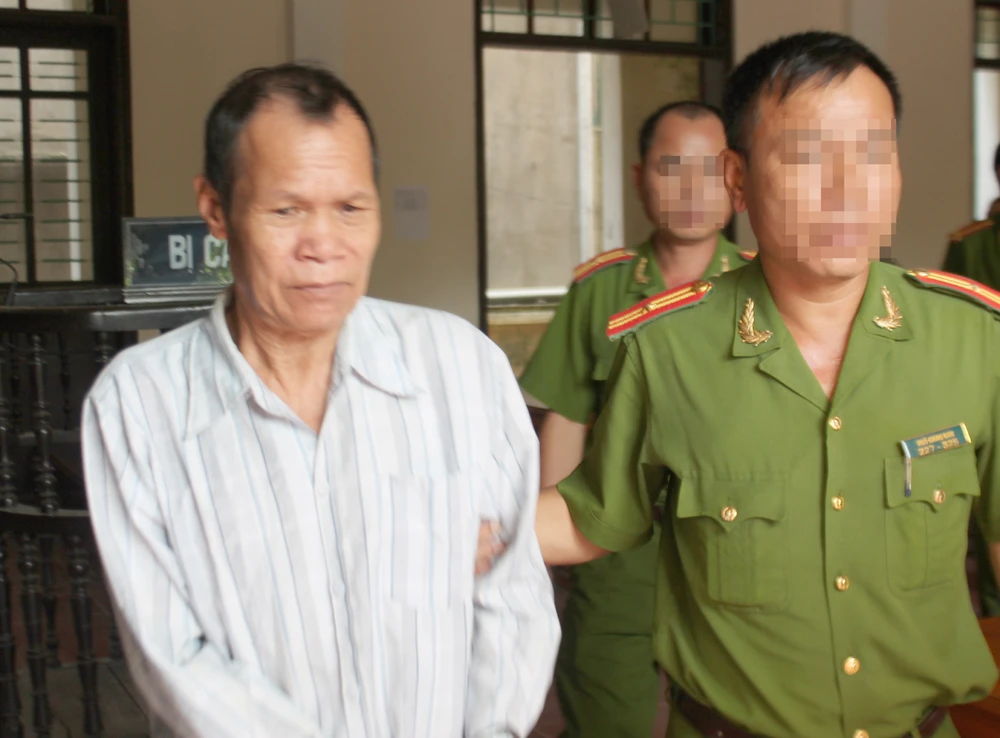 Cảnh sát dẫn giải bị cáo Trương Văn Cùng về trại tạm giam.