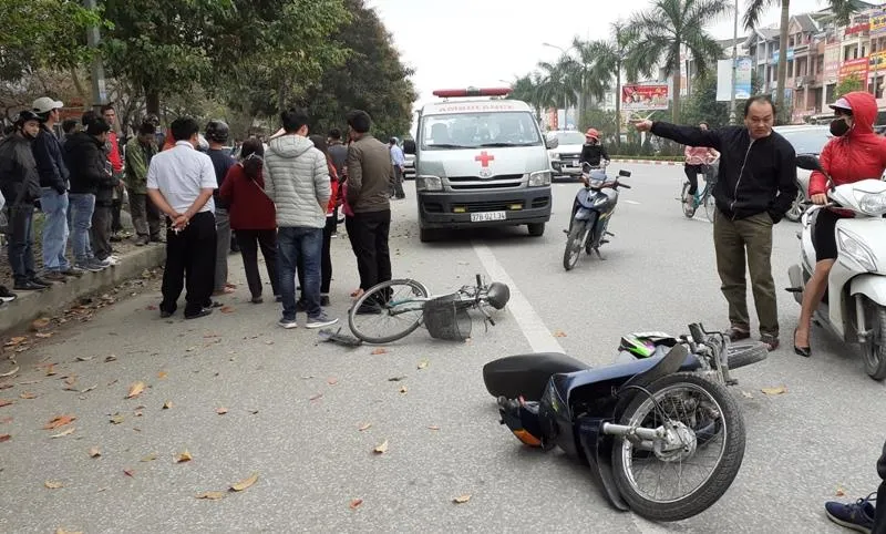 Gần 14 giờ ngày 27-2, trên đại lộ Lê Nin (thuộc địa phận xã Nghi Phú, TP Vinh, Nghệ An) xảy ra vụ tai nạn ô tô tông xe máy, xe đạp, rồi lao lên vỉa hè đâm vào gốc cây.
