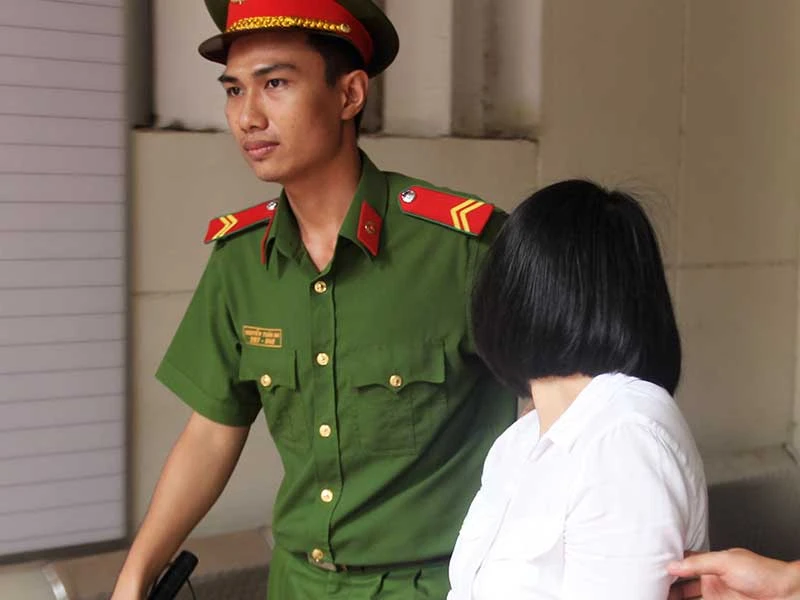Bị cáo Phượng rời phiên tòa trong nước mắt. Ảnh: PL