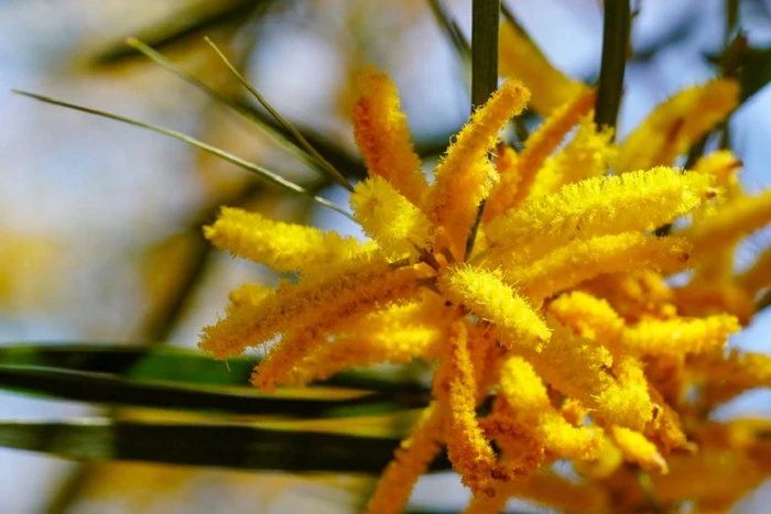 Cận cảnh những bông hoa keo vàng rực trong nắng. Ảnh: NÚI XANH.