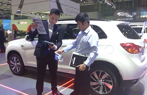 Khách hàng tìm mua ô tô tại triển lãm quốc tế Motor Show 2014 tại TP.HCM. Ảnh: QUANG HUY