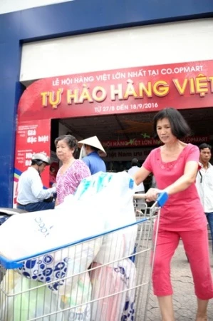 Cụ thể, từ nay đến hết Chủ nhật (11-9) có chương trình Hàng Việt đồng giá, chỉ từ 9.000 đồng ở các mặt hàng thiết yếu như dưa leo, bắp cải, nước mắm, bánh ngọt, sữa lốc, cà phê hòa tan, trái vải đóng hộp, khô bò, dầu gội đầu, dụng cụ nhà bếp, nước lau sàn và thời trang nam nữ.