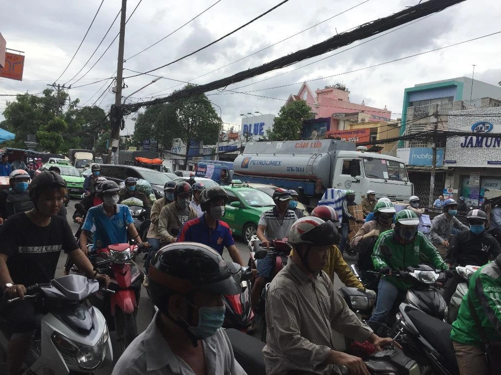 Giao thông bị ùn tắc vì ảnh hưởng của vụ va chạm