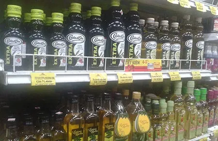 Trên quầy kệ của các siêu thị Co.opmart, Big C, Maximark… những chai dầu ôliu được đặt ở các vị trí không quá khiêm tốn. Ngoài những loại được nhập khẩu từ Tây Ban Nha, Ý, Pháp… cũng có mặt sản phẩm dầu ôliu của các công ty trong nước.